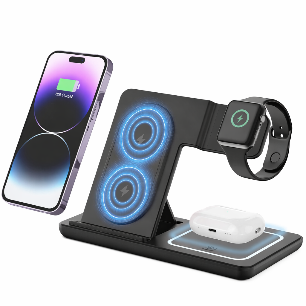 Station de charge sans fil 3-en-1 VIKEFON – Rapide, stable et sécurisée